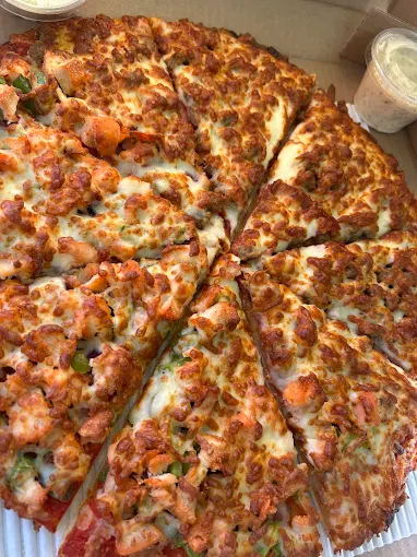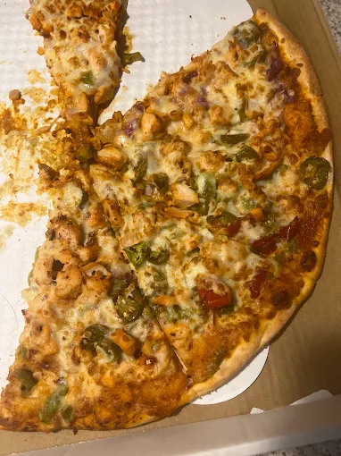 Shahi Sauce, Onions, Green peppers, Jalapenos, Chicken & Mozzarella cheese